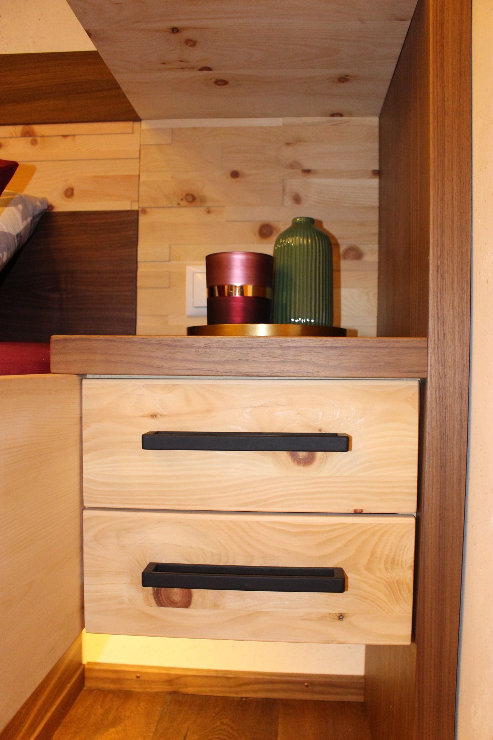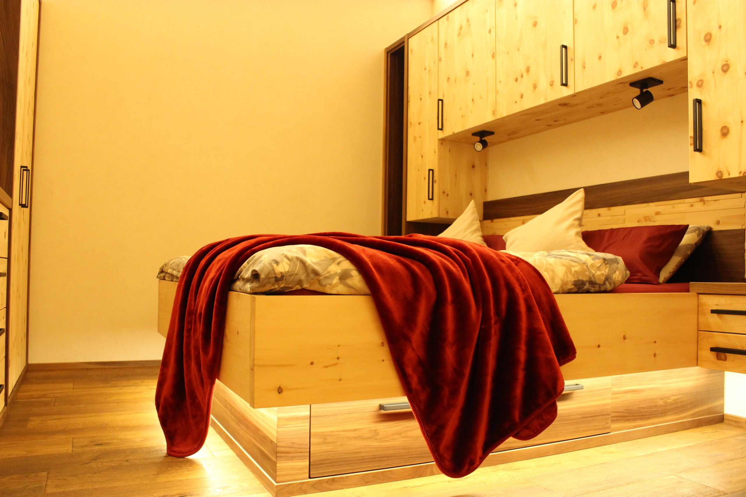 Was das Aussehen Ihrer Einrichtung betrifft, müssen Sie keinerlei Kompromisse eingehen, denn wir fertigen alle Möbel ganz nach Ihren Wünschen an. Gerne runden wir für ein Kinderzimmer alle Ecken und Kanten ab, lackieren Ihren Wohnzimmertisch auf Hochglanz oder fertigen Ihr Bett – auch Boxspringbett – in Ihren Wunschmaßen an und den passenden Kleiderschrank gleich dazu. Natürlich stellen wir für Sie auch gerne ein Bett aus Zirbenholz her, das bekanntlich einen erholsamen Schlaf fördert.
